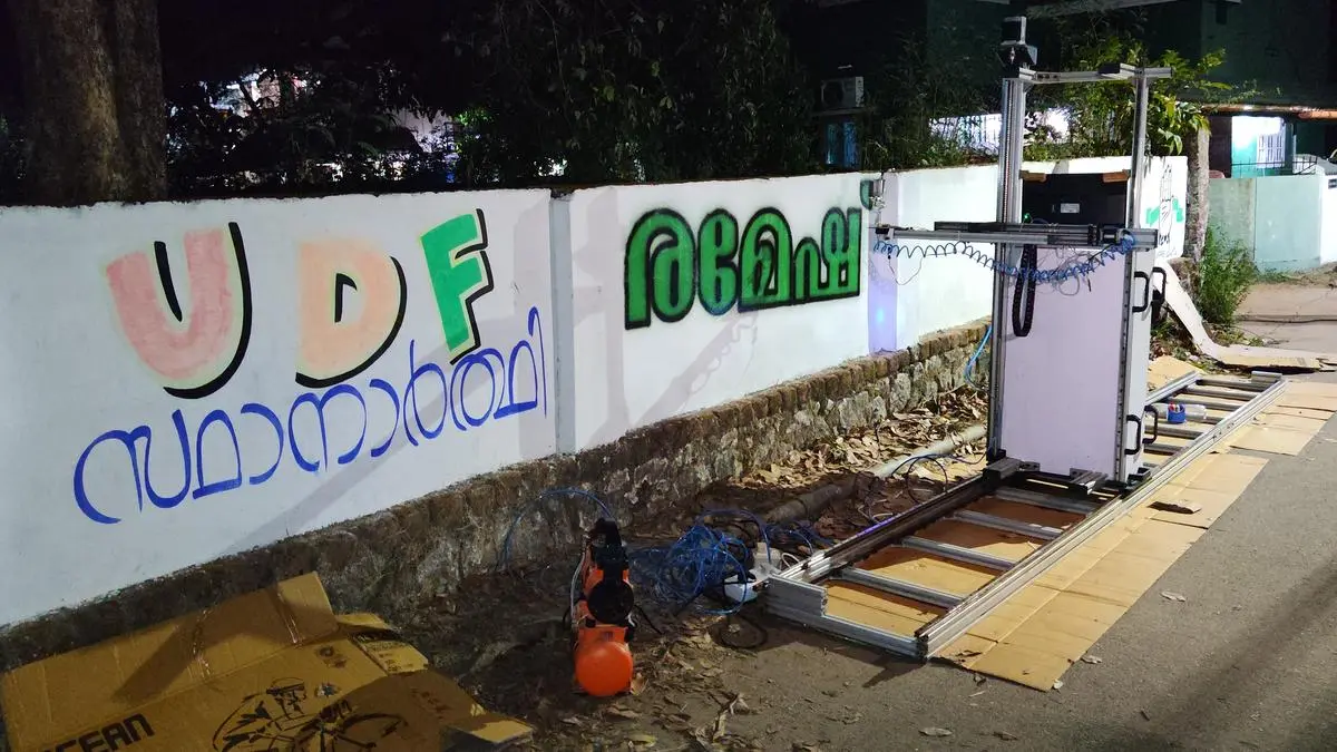 Kerala start-up unveils Chuvarbot 2.0 to automate political wall writing