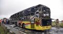 The bus had gone up in flames after it hit a motorcycle, said police