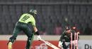 Agha tried to pick up the ball at the non-striker's end while still being outside the crease and was out when Mehidy picked it up and got a direct hit