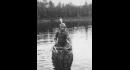 Ernie Benedict in Maniwaki birch bark canoe in Rainbow Lake Adirondacks. Approx....