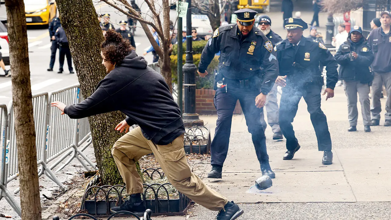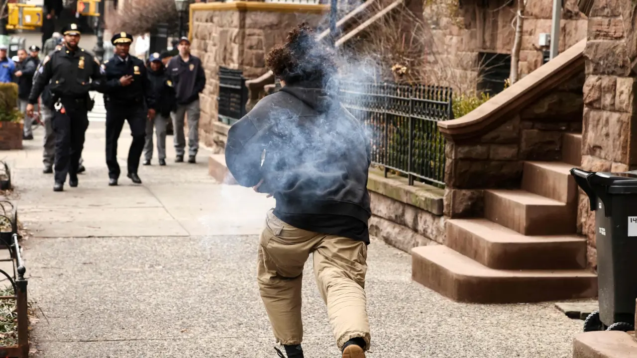 Tensions heighten when someone in the counter-protest lit and threw a device smaller than a football into the protesting crowd of about 20 people