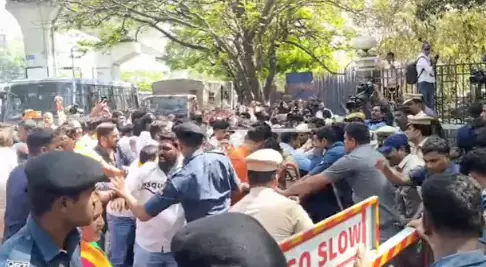 Police personnel present at the spot rushed to the scene and conducted a breath analyser test on the bus driver, identified as Mallesh. The test reportedly indicated consumption of alcohol, following which a case was registered against him under drunken driving provisions. No injuries were reported in the incident.