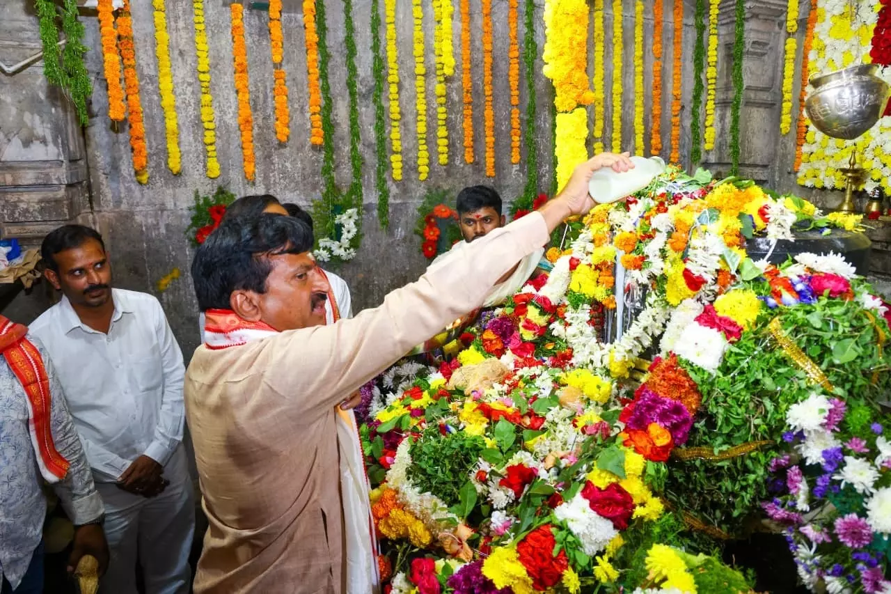 Praying for the prosperity of the State and for all people to live with good health and longevity, Bhatti Vikramarka and his wife Nandini, offered prayers at the Sri Mrityunjaya Swamy Temple
