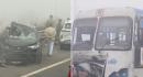 A Suzuki Hayabusa biker crashed near Ambience Mall on the foggy Delhi-Gurugram highway as a cab changed lanes. AQI hit 433 and visibility dropped to 50 metres in Delhi.