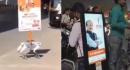 Videos circulating on social media show a robotic dog with posters of political leaders wandering on the streets.