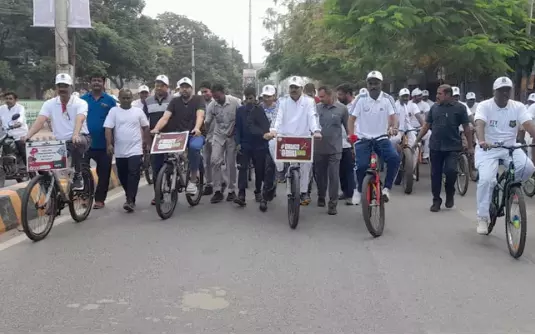 Minister TG Bharat, MLA Gowru Charitha Reddy join 400 cyclists in anti-drug awareness rally.