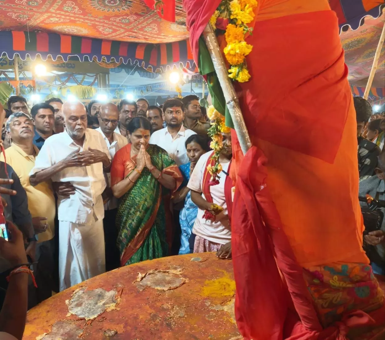 Vehicle carrying family returning from Antarvedi temple rams into culvert; three victims critically injured.