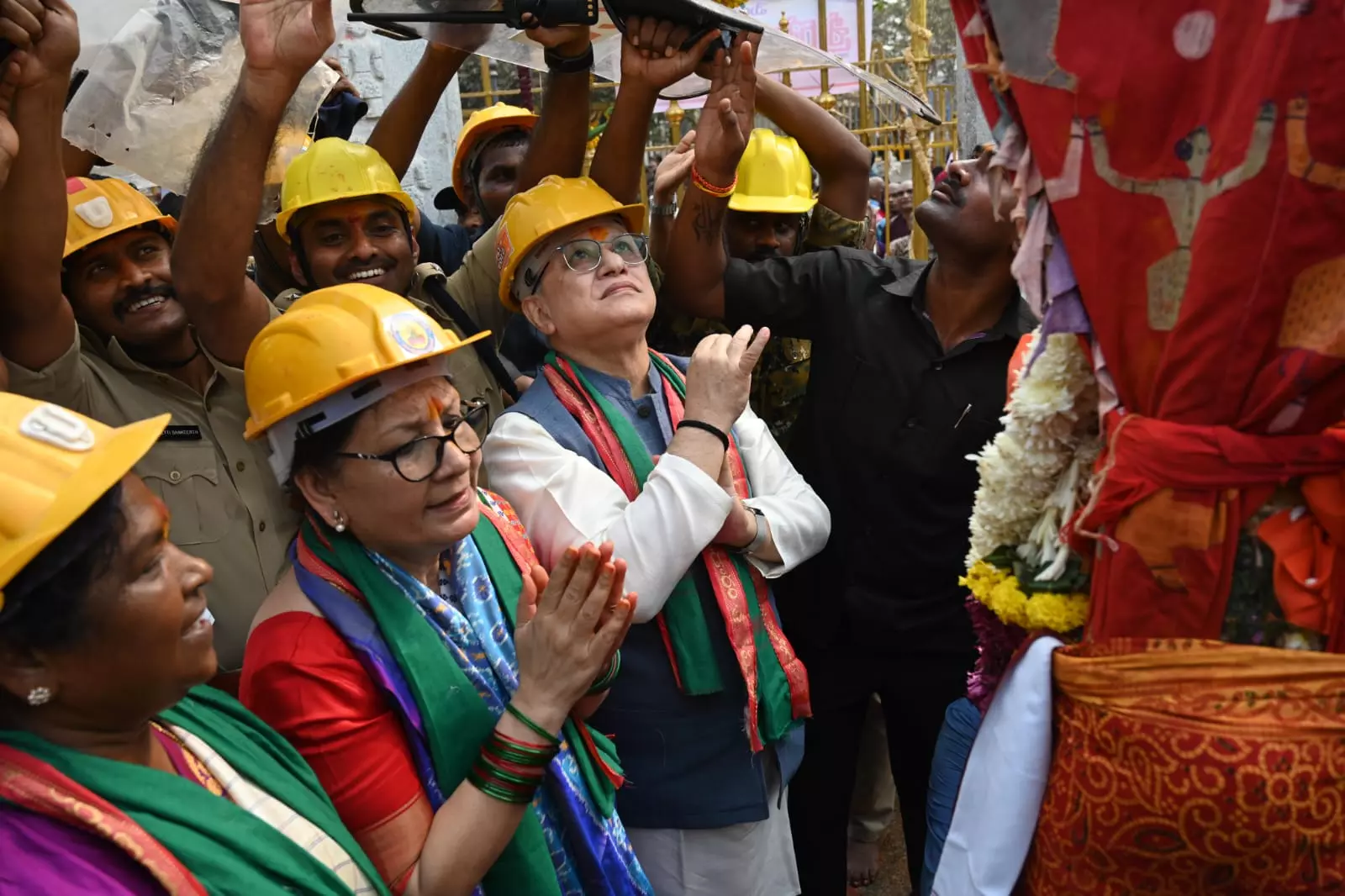 Wearing traditional temple attire, the group included India's T20 captain Suryakumar Yadav, all-rounder Axar Patel, and batters Rinku Singh and Varun Chakravarthy