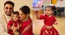 The couple's daughter Dua, dressed in a matching red outfit, looked adorable in her parents' arms. Her cute little ponyt