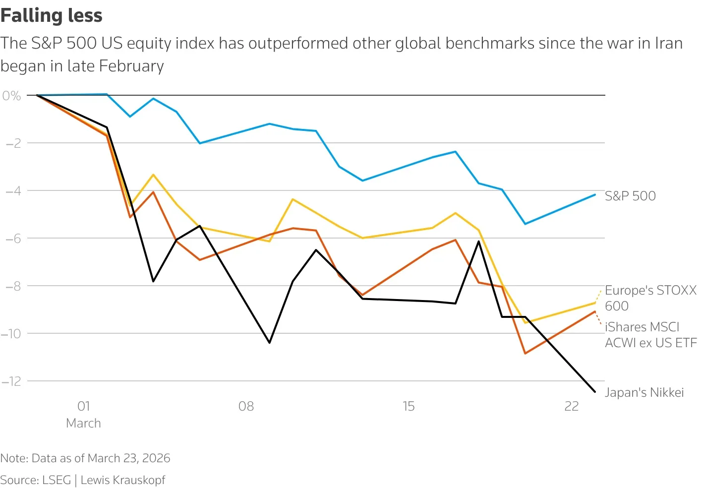 New Delhi, Mar 23 (PTI) Investors wealth has eroded by a whopping Rs 48.29 lakh crore since the start of the West Asia w