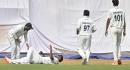 The middle-order batter braves a wrist injury and puts on 154 for the sixth wicket with Suved as the visitor ends up wit