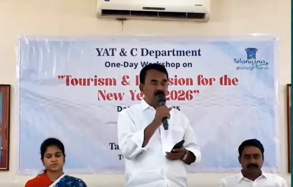 Addressing a brainstorming workshop titled Tourism and Its Vision 2026 organized by the Telangana Tourism Development C
