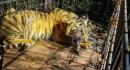 Authorities in Indonesias Riau Province captured a young Sumatran tiger after it entered a trap cage set near a ...