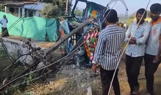 Hyderabad: A bus carrying wedding attendees in Telangana crashed into a house located at the Danthalapalli area of Mahabubabad on Saturday, August 30. The driver was killed on the spot. The bus was travelling from Khammam to Warangal. A video circulating on social media shows locals rescuing the passengers following the mishap. A bus carrying Get the latest updates in Hyderabad City News , Technology , Entertainment , Sports , Politics and Top Stories on WhatsApp & Telegram by subscribing to our channels. You can also download our app for Android and iOS .