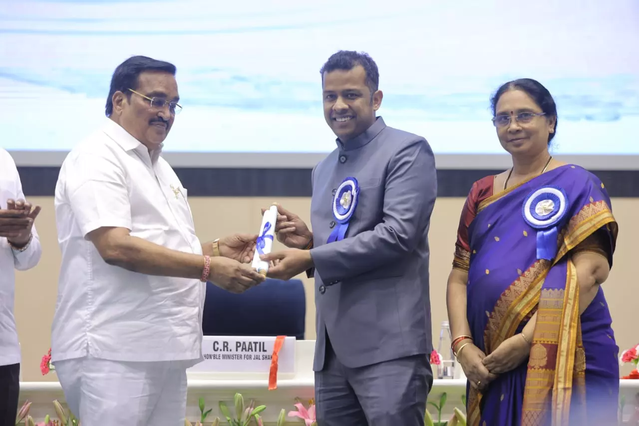 District collector Himanshu Shukla received a national award from Union Jal Shakti minister CR Patil at a ceremony in New Delhi on Tuesday