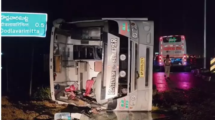 Six Injured as Private Travels Bus Overturns in Nellore